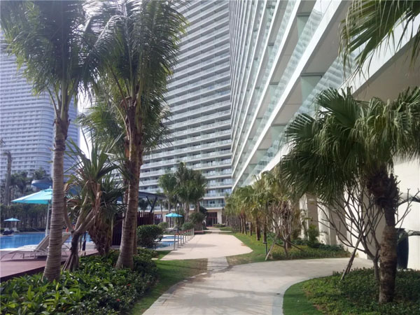 该工程位于三亚海棠湾旅游区,主要是园建及绿化种植工程。该项目园建部分总共面积约56000m2,绿地面积36106m2,整体划分为大区和别墅区两部分。
