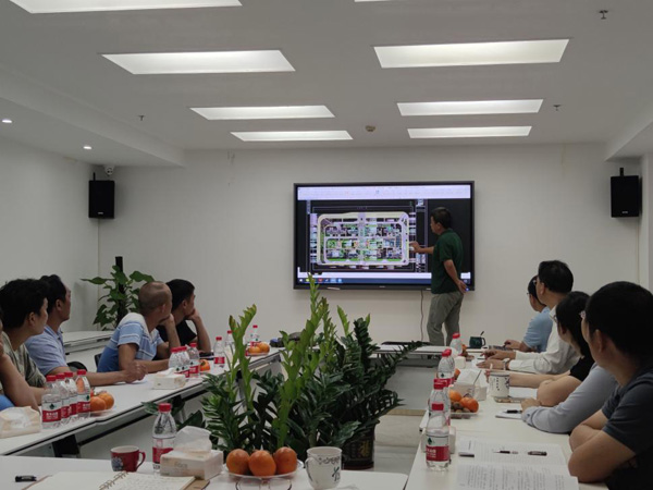 会上,园建、水电、绿化施工员分别对项目专项内容进行汇报,提出石材排版、对缝;排水标高、盲管对接;地形的堆砌等方面的问题,与会人员进行讨论并提出解决方案。