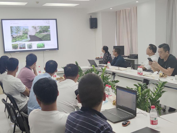 会上,园建、水电、绿化施工员分别对项目专项内容进行汇报,提出垂直绿化的钢结构、铺装大尺度对缝;排水标高、管网布置;乔木分支点、苗木存活率、植物支撑、部分苗木不适应海南气候等方面的问题,与会人员进行讨论并提出解决方案。