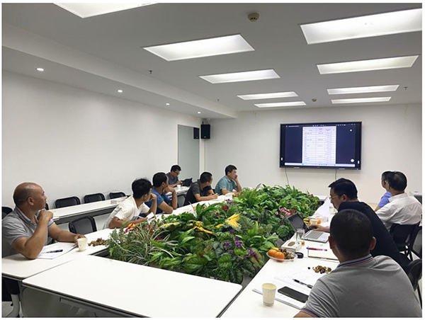 会上,生产经理张虎、绿化施工员李远春、水电施工员周传国对项目的专项内容进行汇报,分别介绍了项目中施工难点以及对图纸存在的疑问、项目中所需苗木具体规格和可能需要变换的品种,并提出苗木表与图纸的差异问题。针对这些问题设计研发中心与项目部管理人员一起讨论,共同对图纸中的结构规格作出了调整,并整理出需要变更及补充的图纸内容。