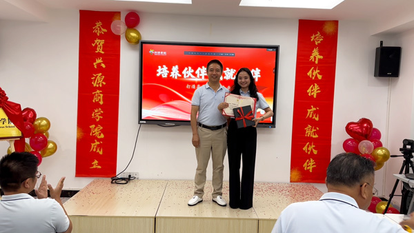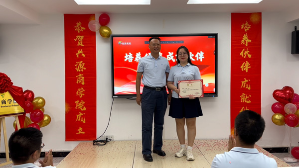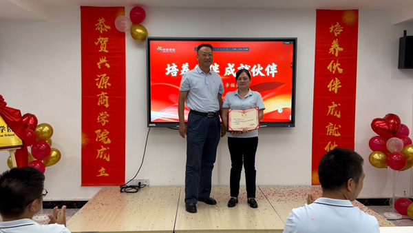 李院长为兴源商学院执行院长兼兴源哲学推进指导邢俏依同志颁发聘书