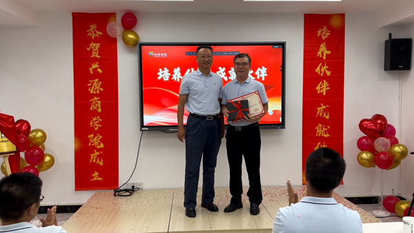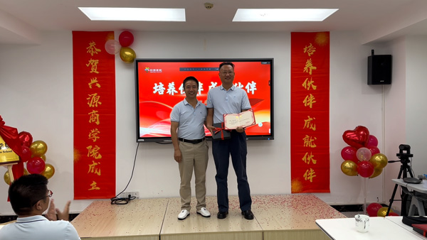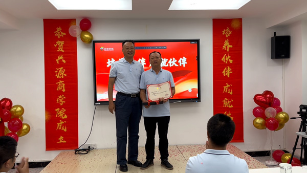 常务院长钱导师为兴源商学院水电指导老师况先利同志颁发聘书