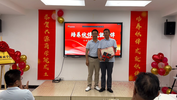 李院长为兴源商学院常务院长兼软质景观指导钱忠明同志颁发聘书