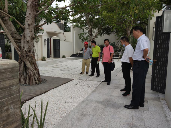 26日,公司高层到达阿那亚·三亚的山项目现场后,对植物的维护以及部分景观工程进行仔细的检查,并对部分施工工艺作出表扬。随后,在崖州湾·海垦顺达花园项目现场,李总对项目情况进行了解,对接下来要完成的施工做出指导,同时嘱咐现场注意施工安全。