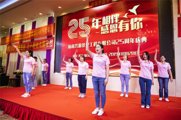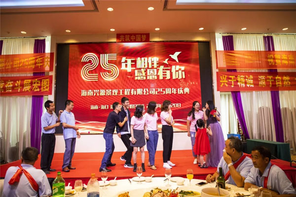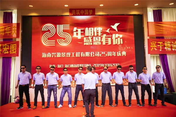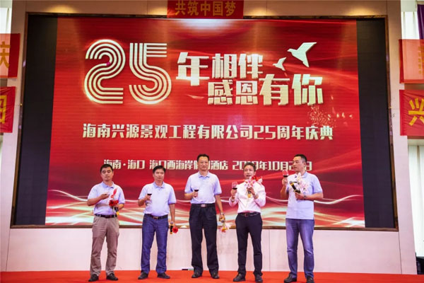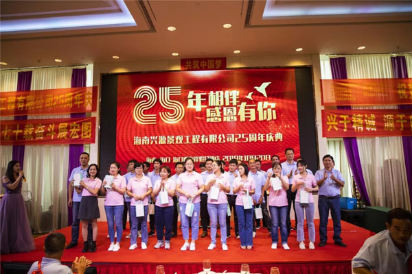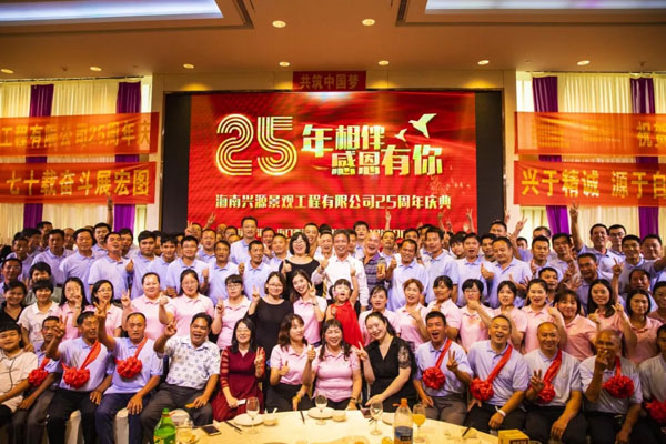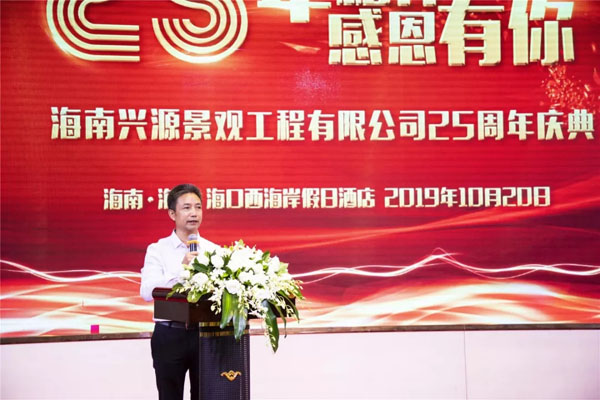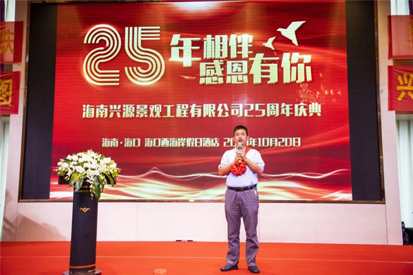 在公司25周年庆典上,李远树董事长致辞时感恩地说,兴源景观所获得成绩离不开国家的好政策,离不开合作伙伴、客户的支持、信任和帮助,更离不开全体员工辛勤的付出和贡献。他表示,对兴源景观的未来充满信心,兴源景观将一如既往“不忘初心,牢记使命”,坚守用热带园林让人们生活得更幸福的企业使命,致力于成为海南热带园林的领航者而奋斗。