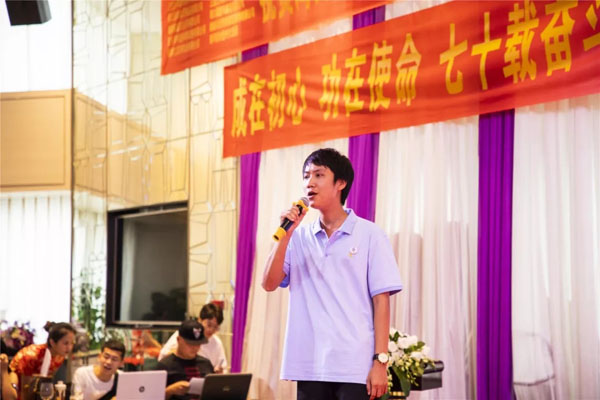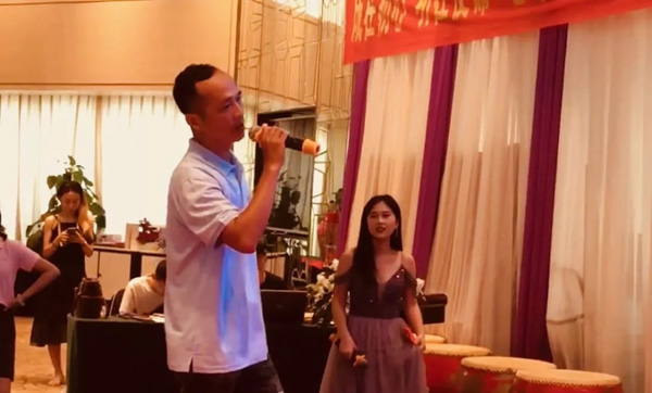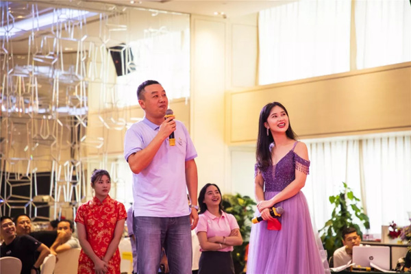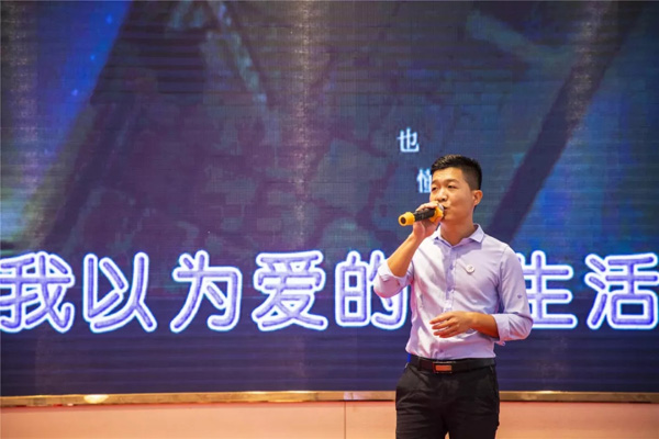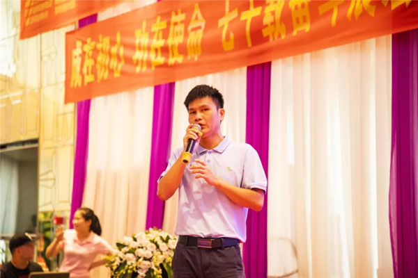 庆典现场,老员工付越刚借周年庆,表达对公司的感恩之情。